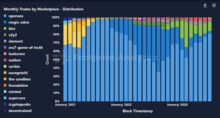 In terms of number of transactions and users, Opensea continues to hold the majority share and keep growing, which has been for a long time.