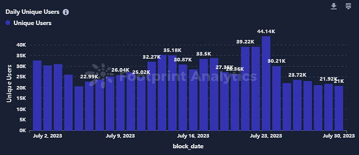 The increase in buyers during this period can be attributed to the events of projects such as Planet IX and Galaxy. Specifically, as of July 23rd, Planetix had 4,932 NFT buyers compared to only 59 sellers, indicating strong demand and enthusiasm for buying NFTs. Games like Planetix continue to be a key driver of the active NFT market.